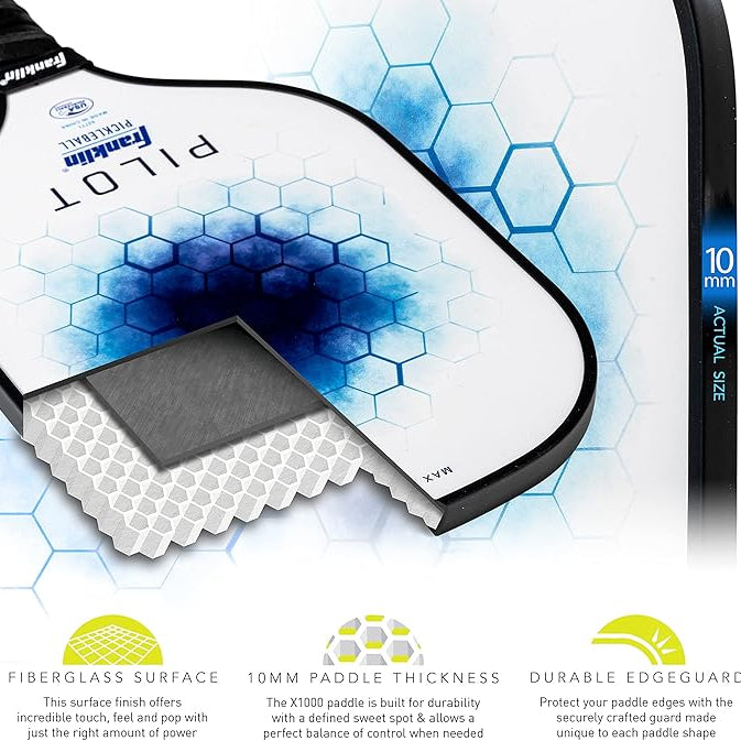 Franklin Sports Pickleball Paddle - Pilot Polypropylene Core Pickleball Racket - Official USA Pickleball (USAPA) Approved Pickleball Paddle - Lightweight Pro Racket - 10mm Thick Core