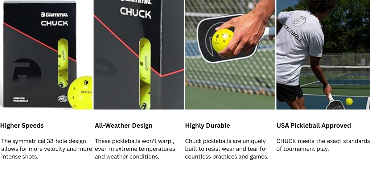 - ALL-WEATHER ENDURANCE: Each CHUCK pickleball set is engineered to endure the extremes of outdoor play. These pickleballs won't warp or crack.