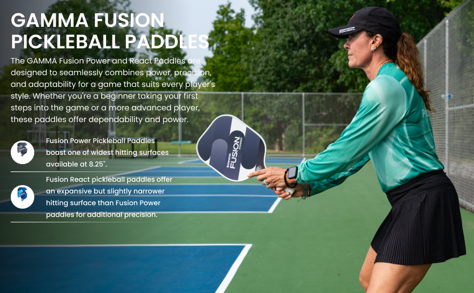 - POWERFUL PERFORMANCE: The GAMMA Fusion Power pickleball racquet is engineered for a significant power boost with a fiberglass hitting surface, ensuring impressive performance on the court.