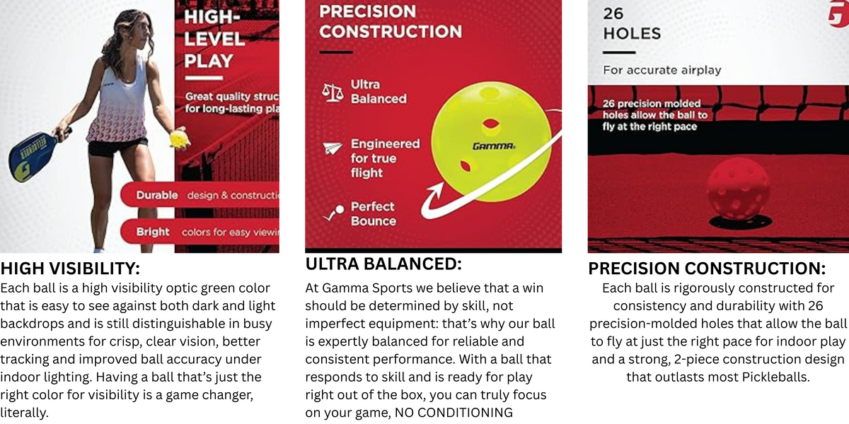 Gamma Photon Indoor or Outdoor Pickleballs, USAPA Approved,High-Visibility, Bright and Durable, Engineered for True Flight, Available in 3 Pack, 6 Pack, 30 Bucket, 60 Pack