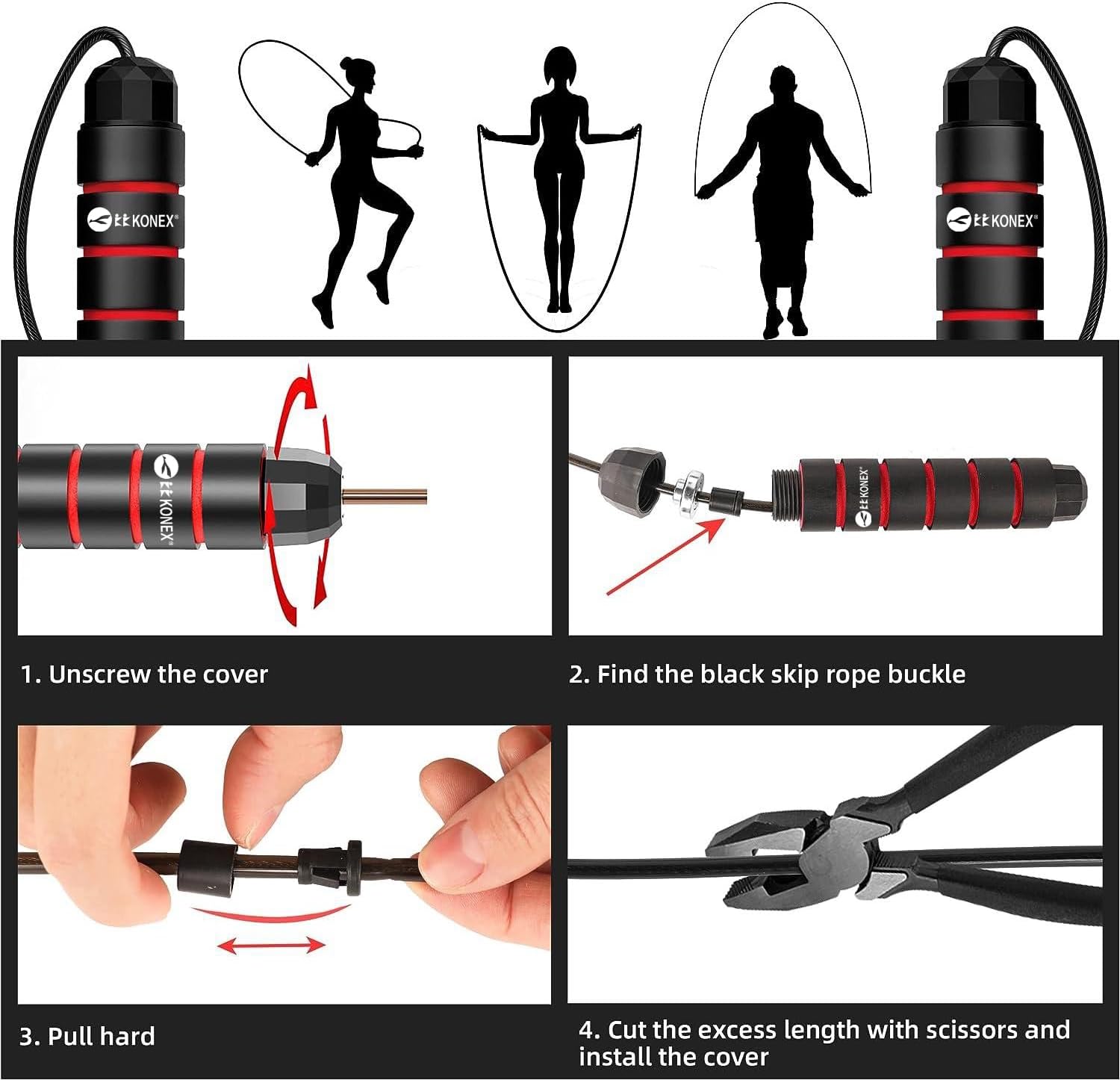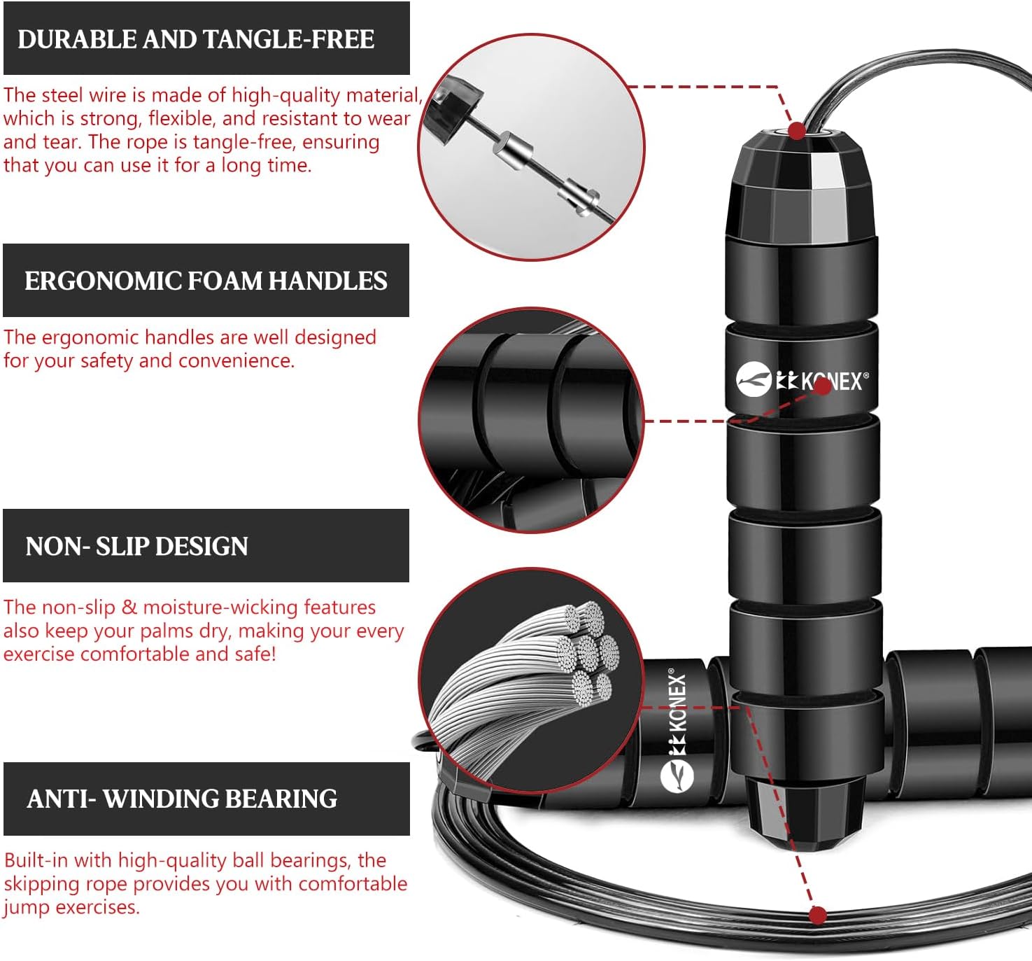 حبل القفز Konex للرجال والنساء حبل قفز قابل للتعديل، حبل تمرين للتمارين الرياضية
