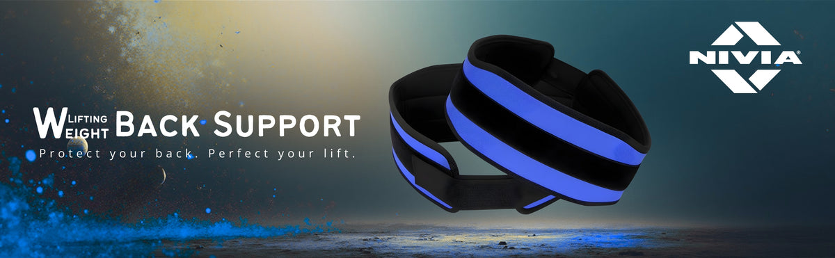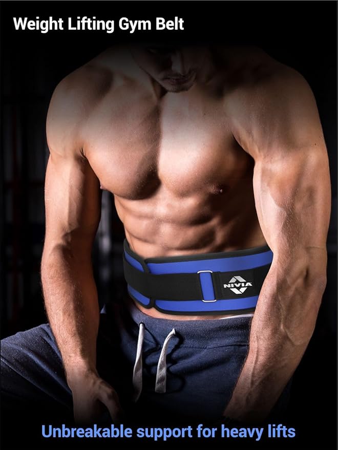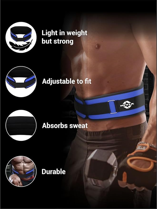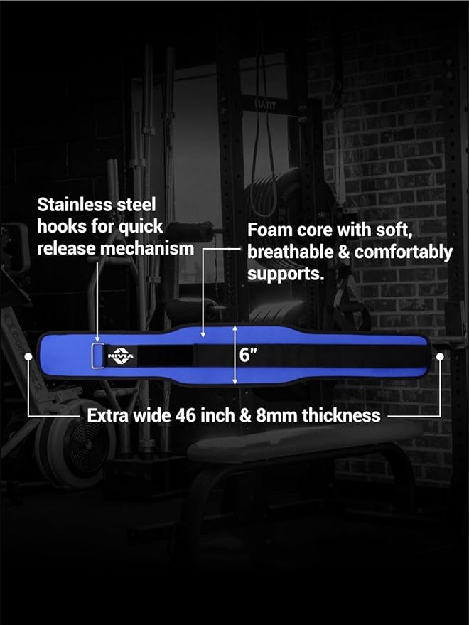 NIVIA EVA دعامة ظهر قابلة للتعديل مع حزام فيلكرو لرفع الأثقال وتسكين الآلام والجيم والتمارين الرياضية وركوب الدراجات، أزرق/أسود، 1.07 متر