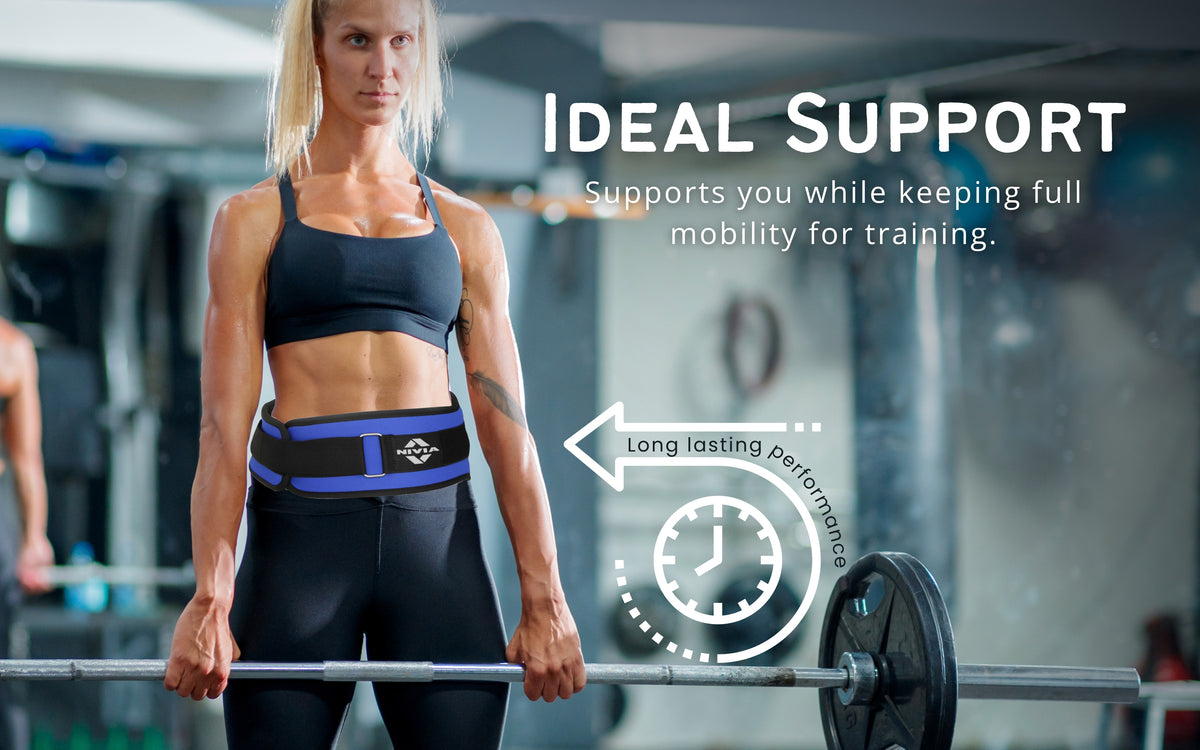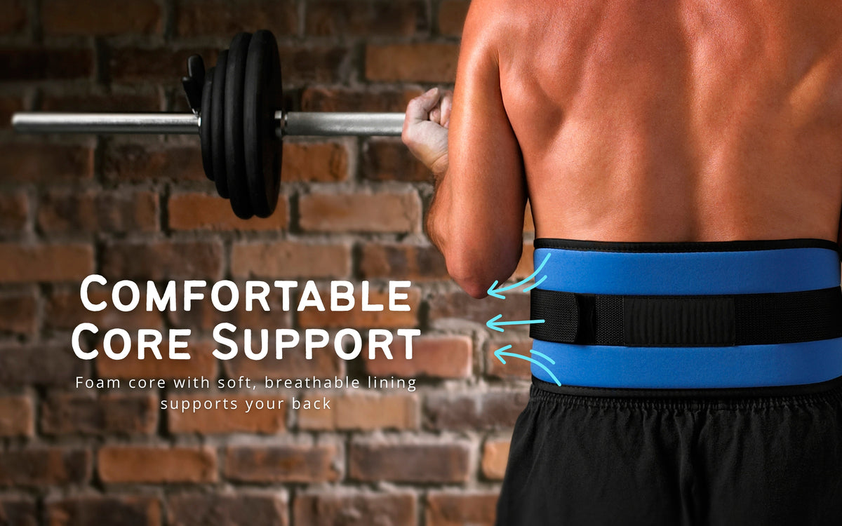 • قلب من الإسفنج مع بطانة من التريكو الناعم القابل للتهوية والقطيفة تدعم الظهر والبطن بشكل مريح أثناء رفع الأثقال الثقيلة