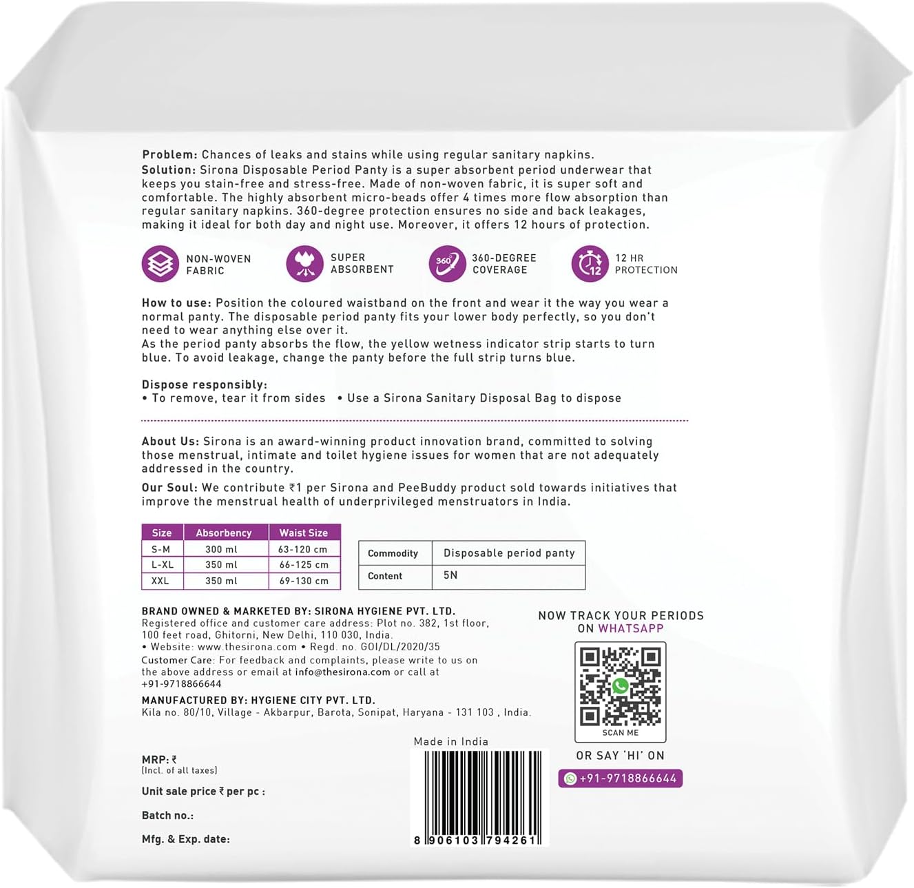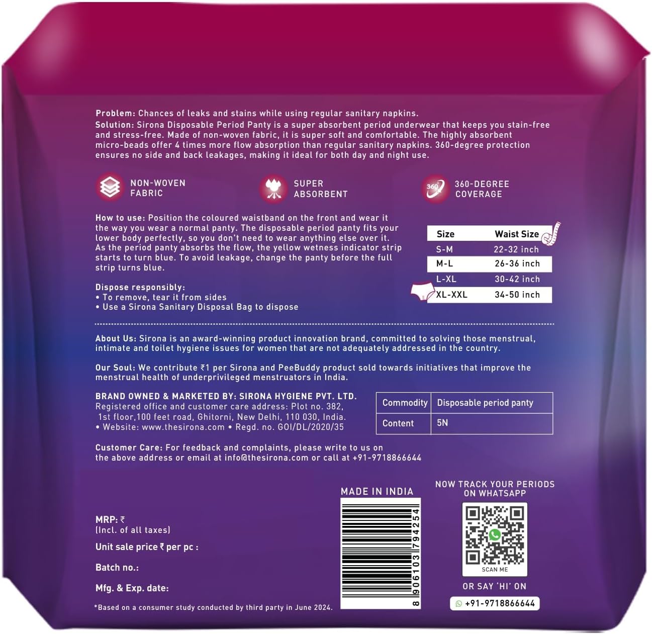 سراويل داخلية للفتيات والنساء من Sirona عبوة من 5 قطع تغطية 360 درجة لفترات حيض خالية من التوتر | حماية من التسرب في حالات التدفق الغزير | خالية من الطفح الجلدي | فائقة الامتصاص ومريحة عند الارتداء