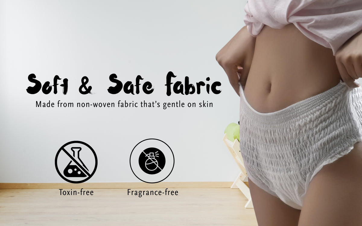 - السراويل الداخلية مصنوعة من قماش غير منسوج مما يجعلها مريحة عند الارتداء.