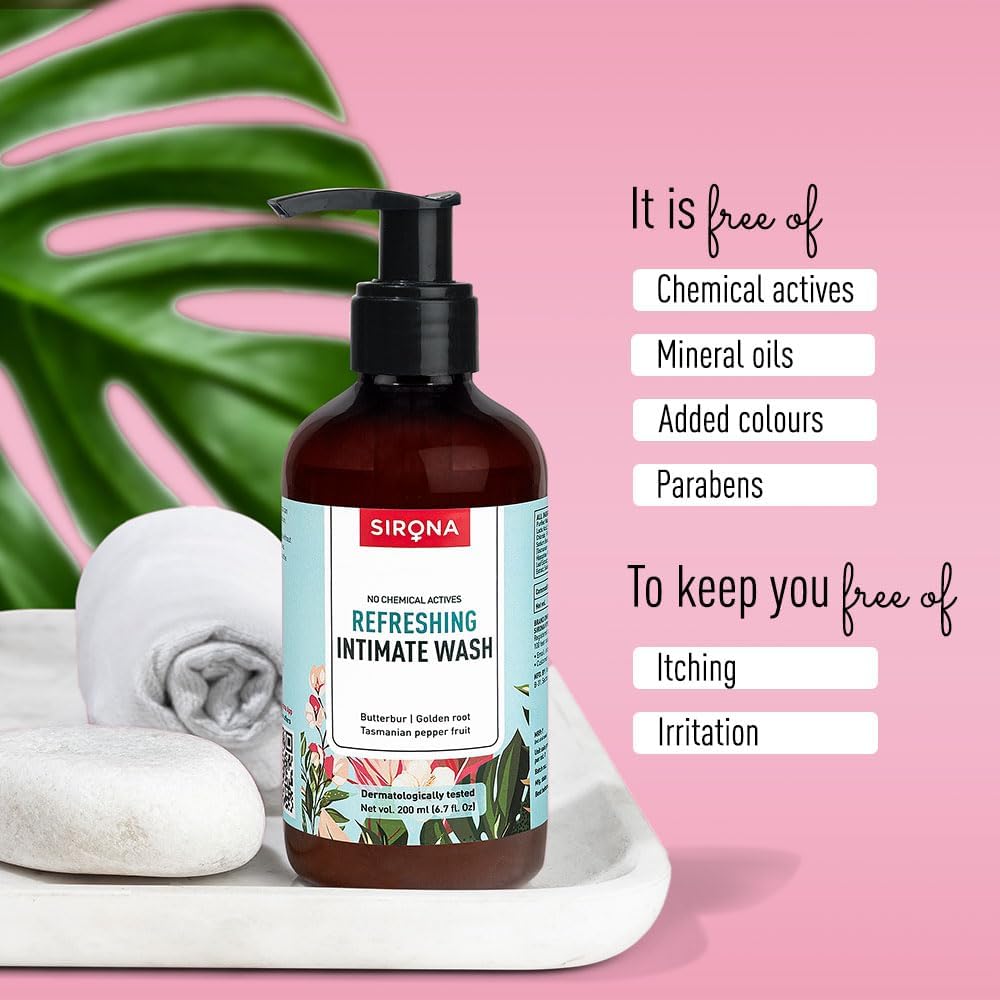 سيرونا منظف نسائي منعش طبيعي - 6.7 أونصة سائلة (200 مل) | خالٍ من المواد الكيميائية، لا يسبب تهيجًا، منظف حميمي متوازن الحموضة، يساعد على تقليل الرائحة والحكة