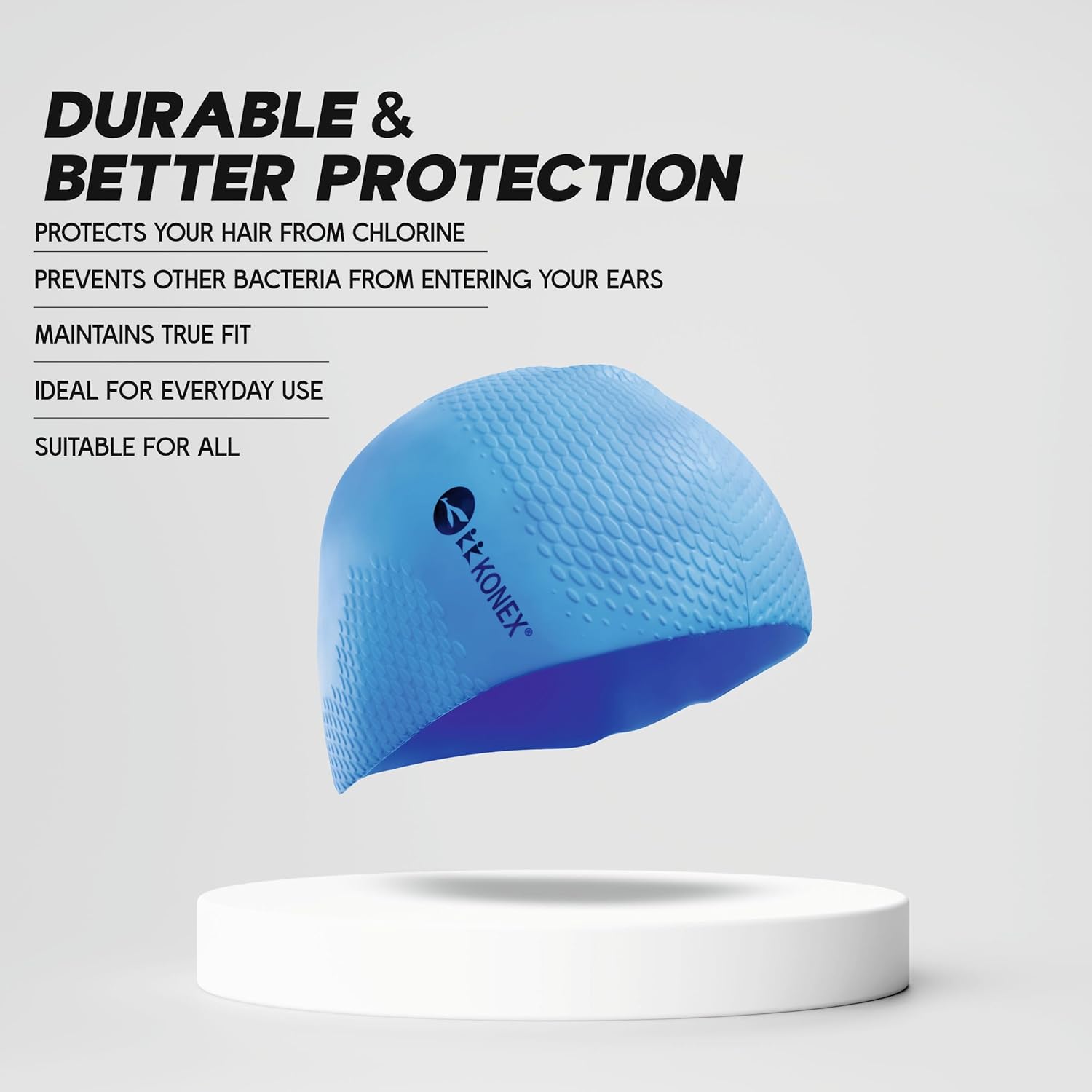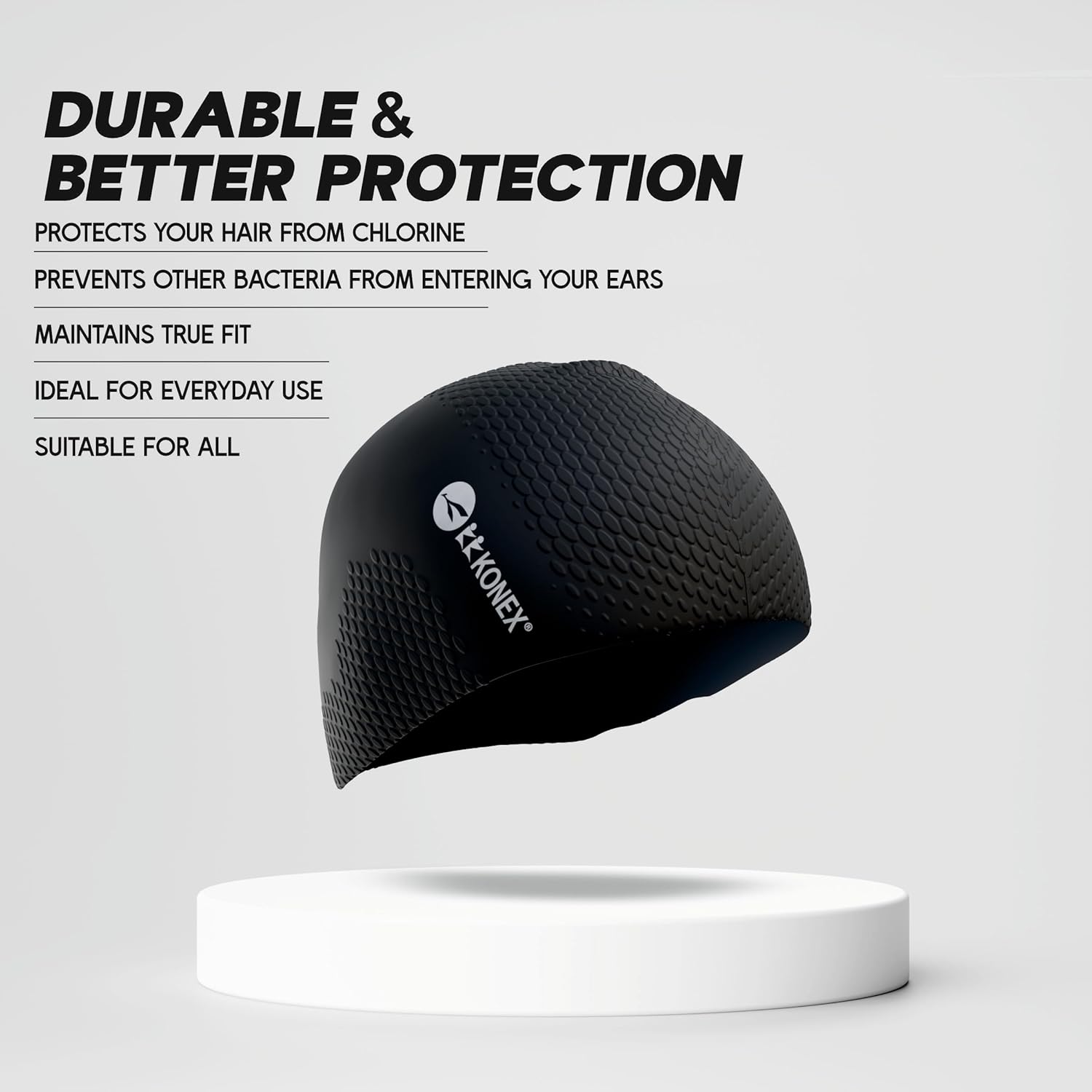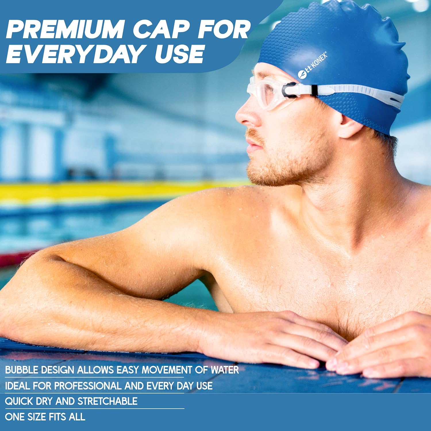 قبعة سباحة مقاومة للماء من Konex للرجال والنساء والفتيان والفتيات | سيليكون | مقاس واحد يناسب الجميع | لا تسحب الشعر | تمنع التلف الكيميائي