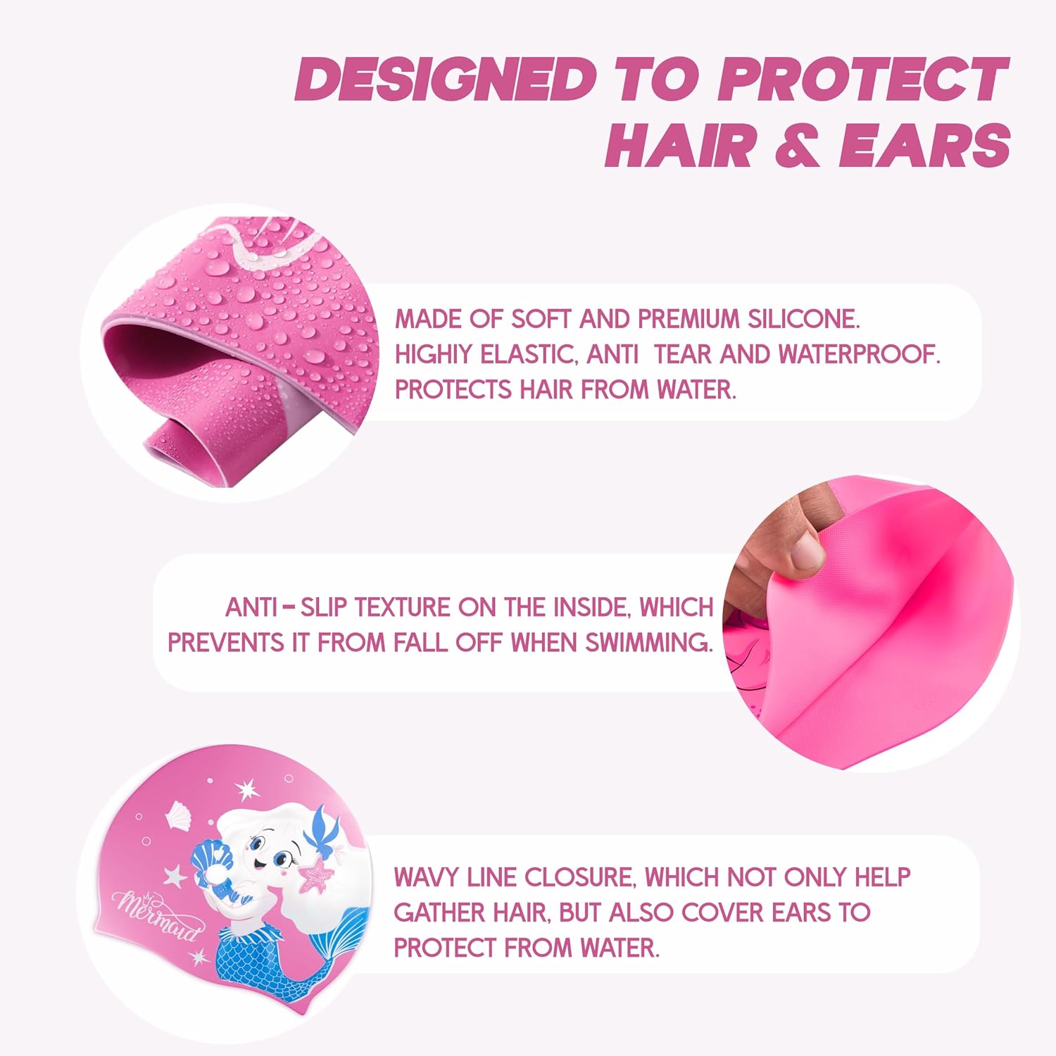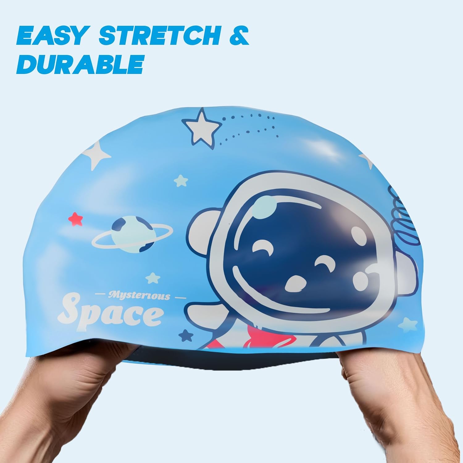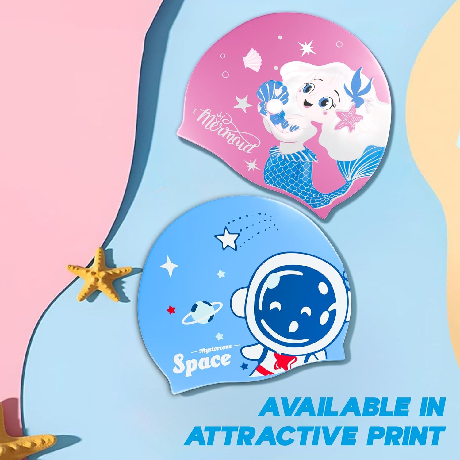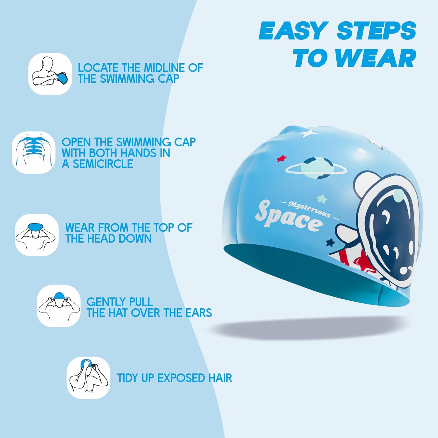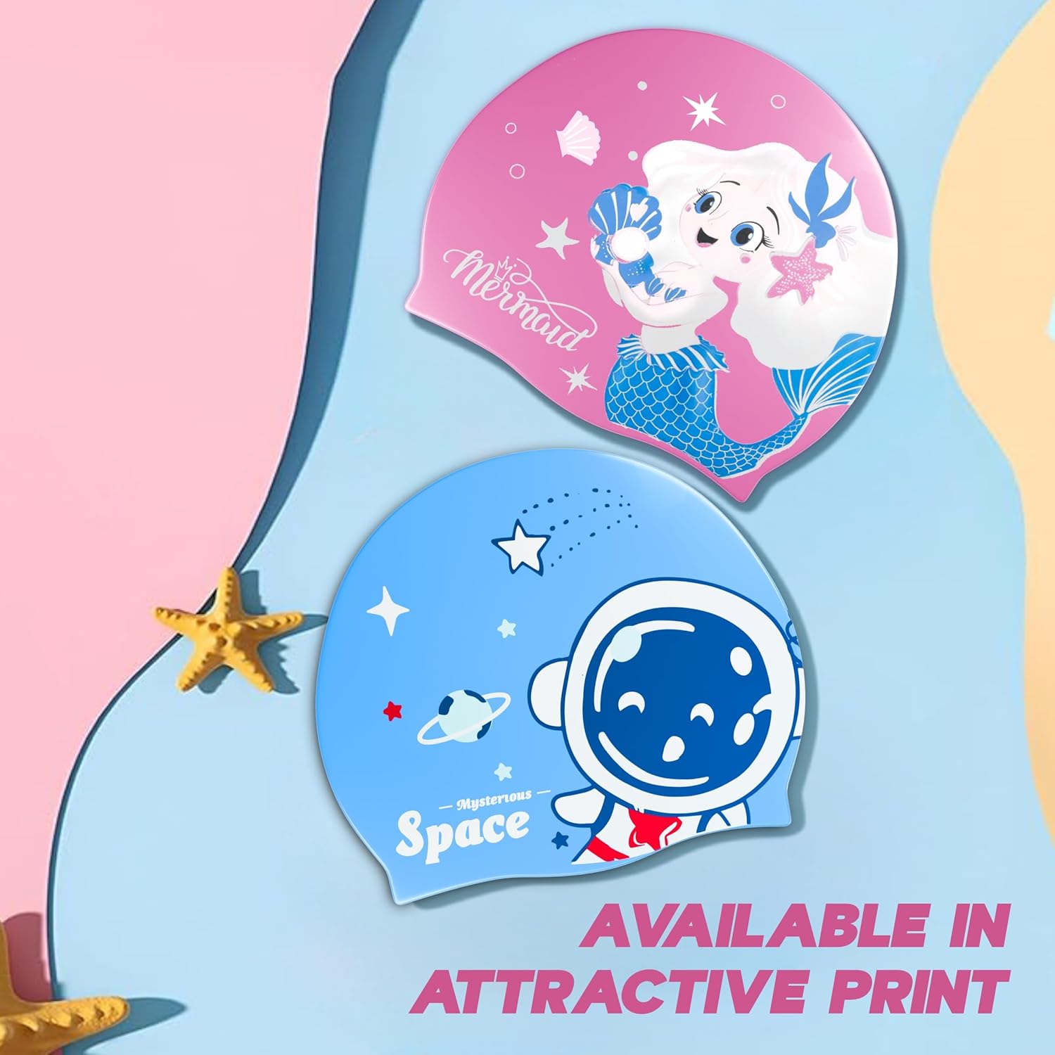 •  طبعات لطيفة للأطفال: قبعات مطبوعة ملونة وممتعة مصممة خصيصًا للأطفال للاستمتاع بالاستحمام أو السباحة مع الحفاظ على جفاف الشعر وحمايته.