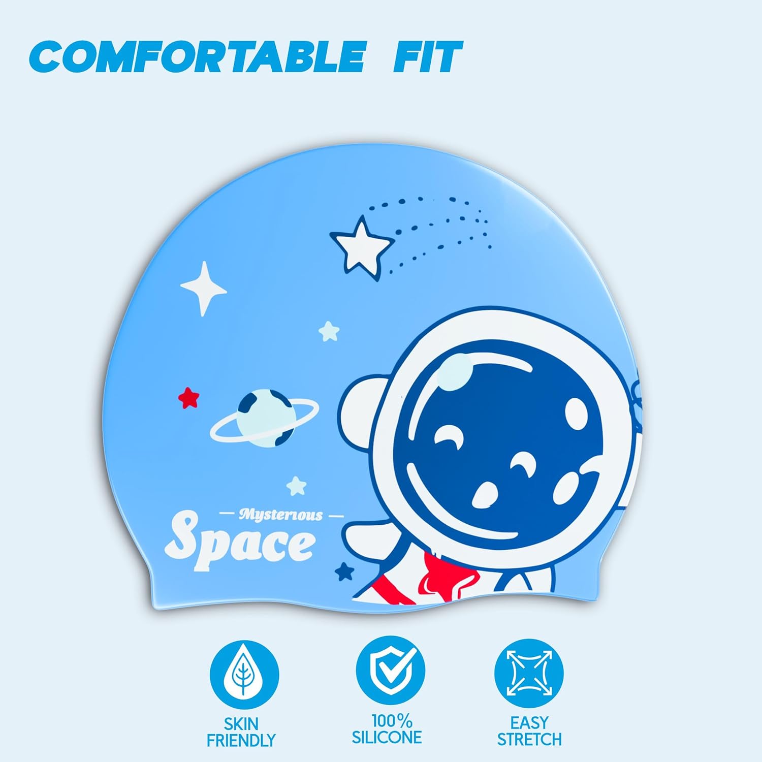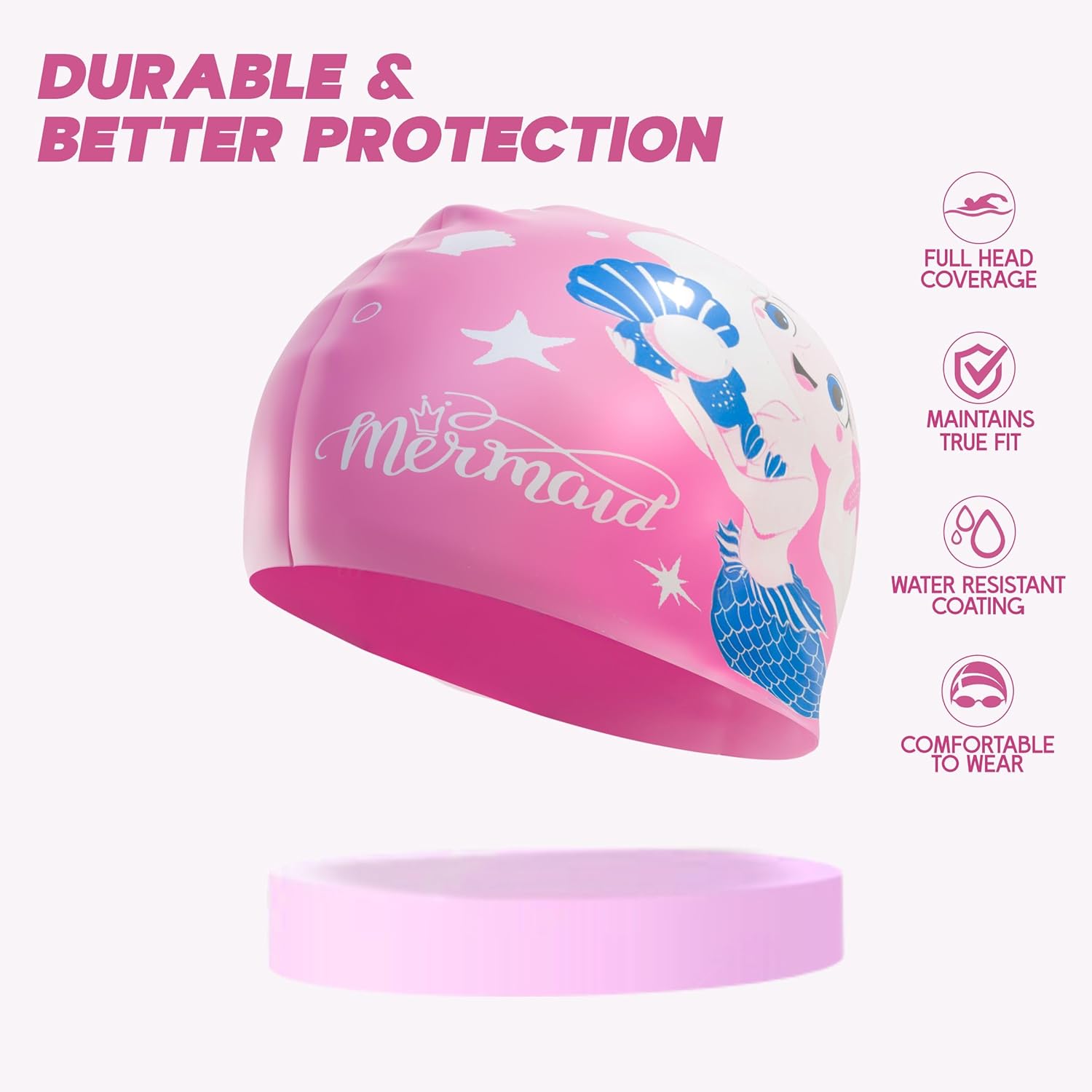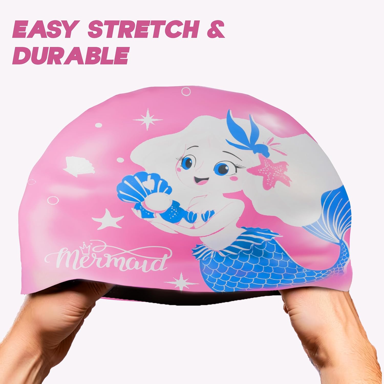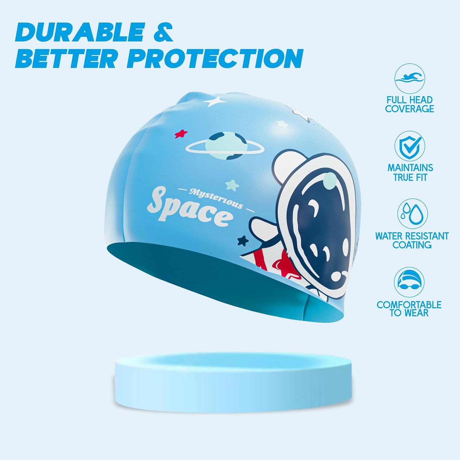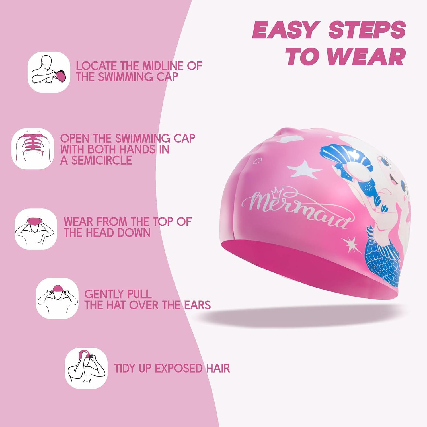•  طبعات لطيفة للأطفال: قبعات مطبوعة ملونة وممتعة مصممة خصيصًا للأطفال للاستمتاع بالاستحمام أو السباحة مع الحفاظ على جفاف الشعر وحمايته.