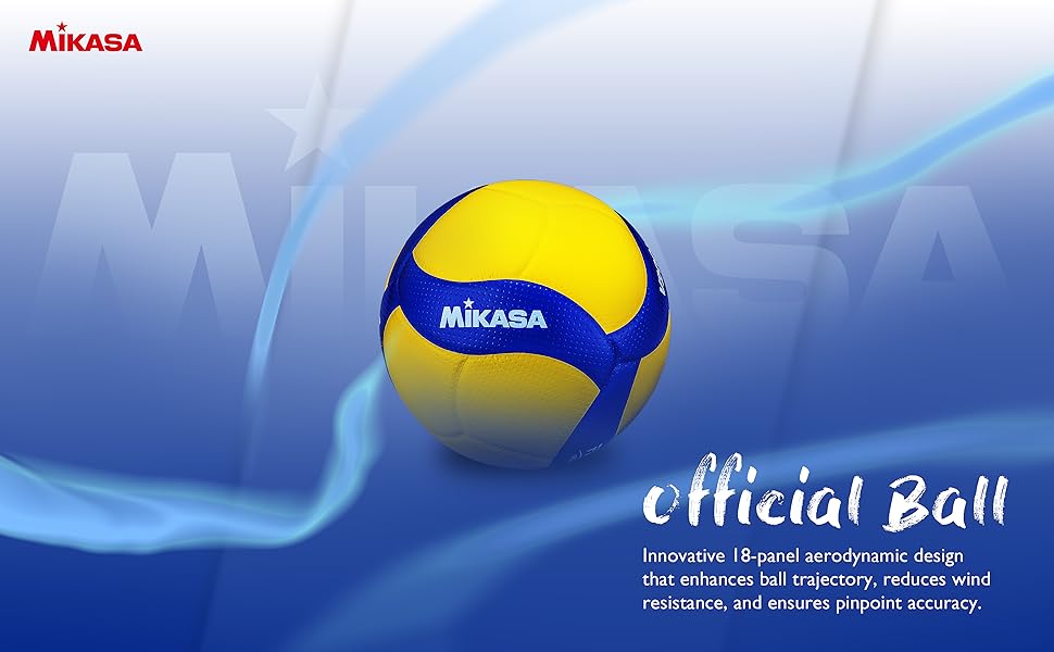 كرة طائرة ميكاسا بريميوم مقاس 5 | تصميم من 18 قطعة، معتمدة من الاتحاد الدولي للكرة الطائرة، أداء مانع للانزلاق | للاستخدام الداخلي/الخارجي، أزرق/أصفر