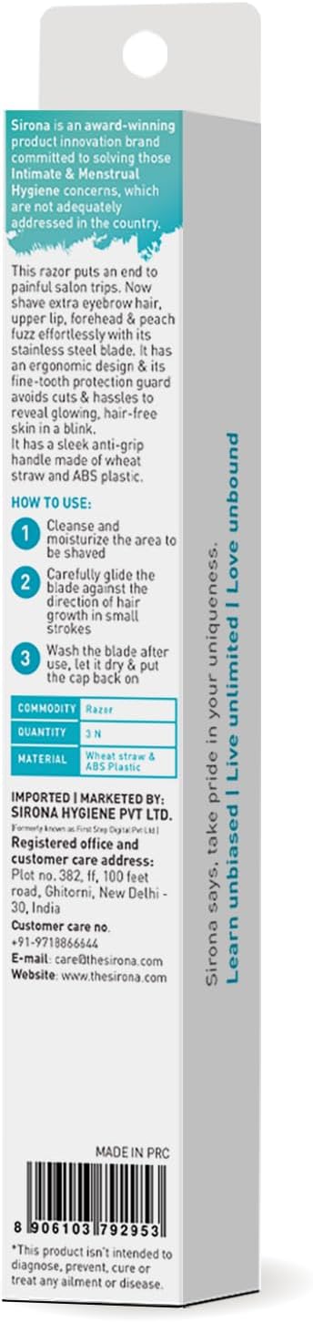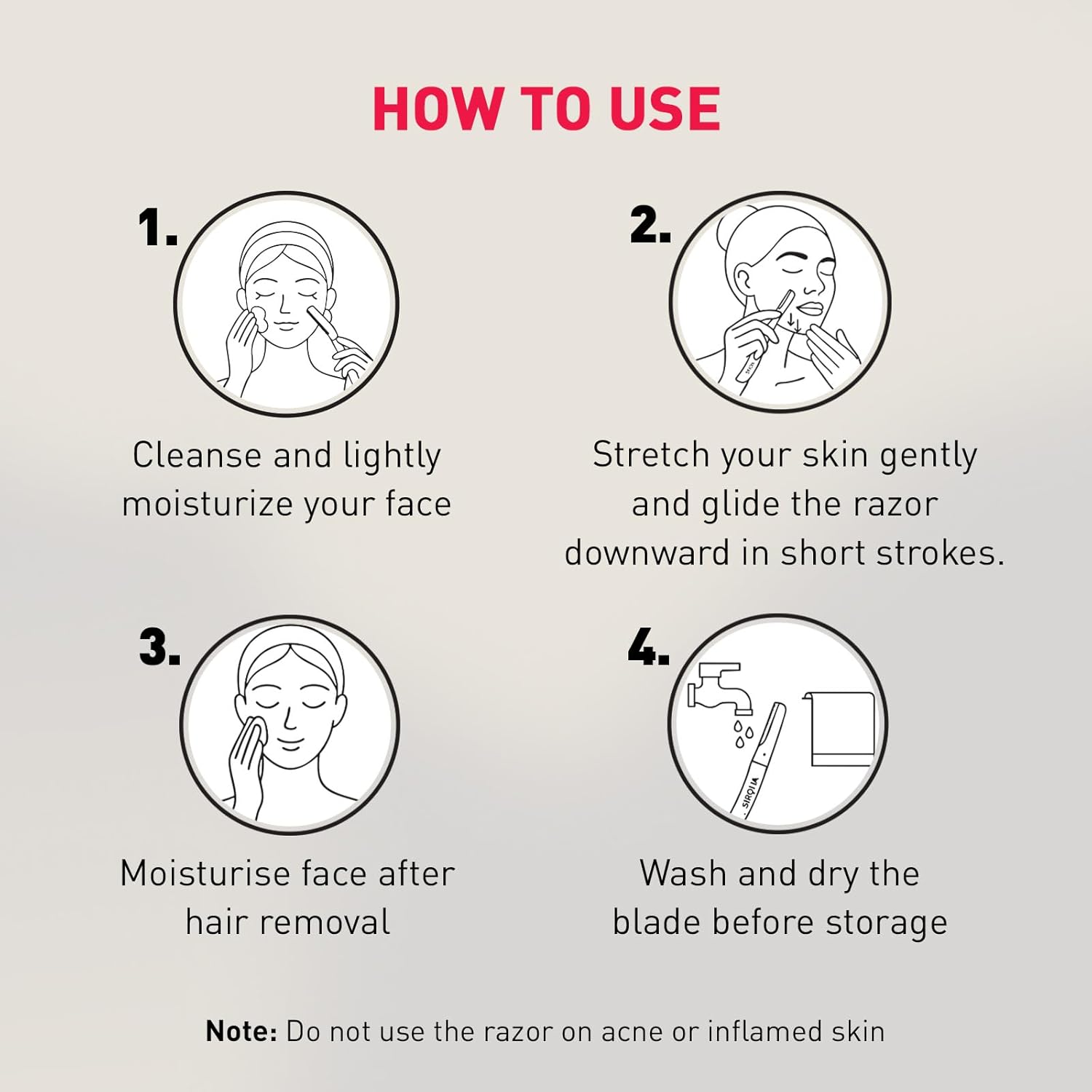 ماكينة حلاقة الوجه Sirona Blink and Glow للنساء - 3 شفرات حلاقة | إزالة شعر الوجه والشفاه العليا، أداة تشكيل الحواجب وتقشير البشرة