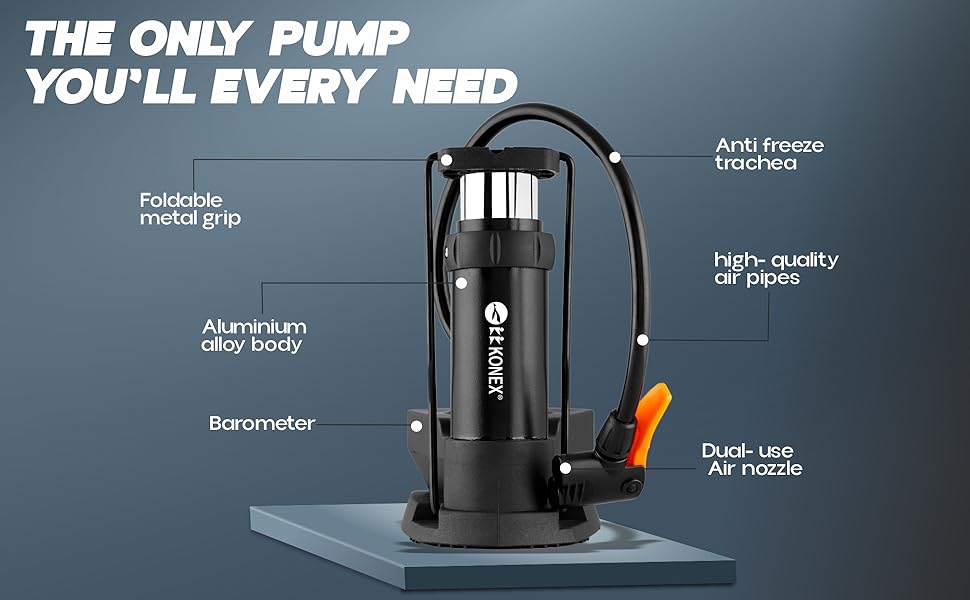 •  توافق عالمي: صممت مضخة كرة القدم Konex لتناسب مختلف أنواع الصمامات، وتتميز بتوافقها العالمي. من كرات القدم إلى غيرها من الألعاب القابلة للنفخ، فهي الأداة المثالية للحفاظ على الضغط المناسب دون عناء.