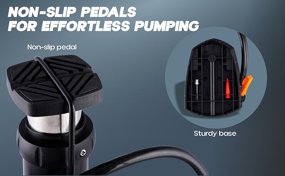 •  العلبة تحتوي على مضخة هواء قدمية عالية الضغط مع مقياس