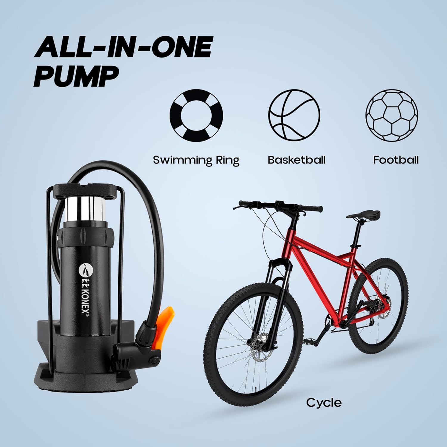 •  نفخ سهل: تضمن مضخة كرة القدم Konex نفخًا سهلاً بضغطات القدم، مما يجعلها حلاً مريحًا وفعالًا لنفخ كرات القدم والمعدات الرياضية.