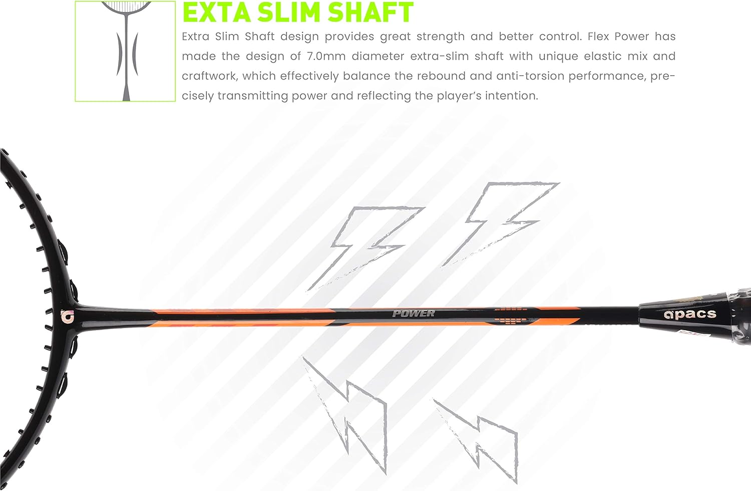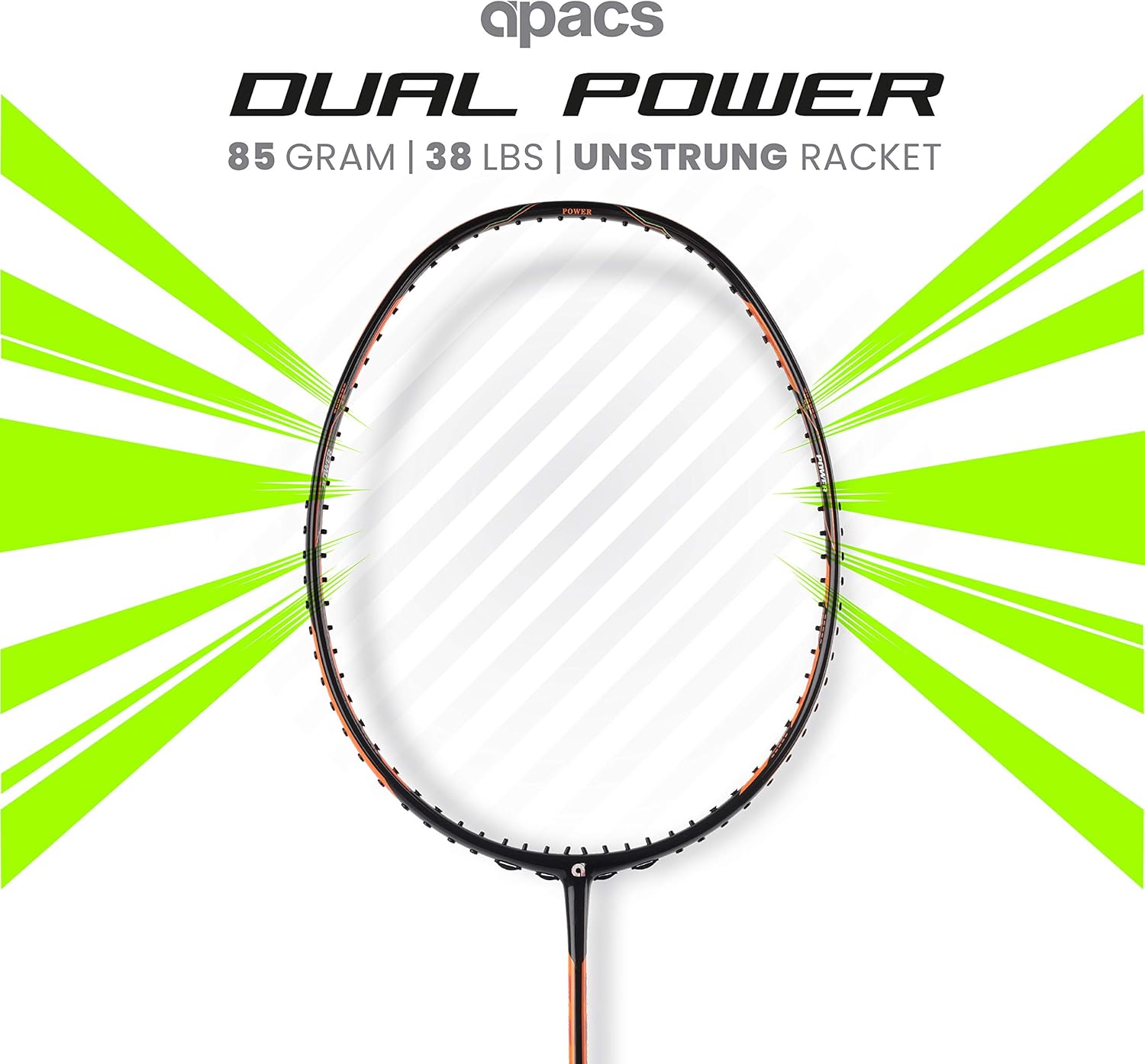 مضرب تنس الريشة APACS مزدوج القوة والسرعة بدون أوتار مع غطاء كامل (أسود برتقالي)
