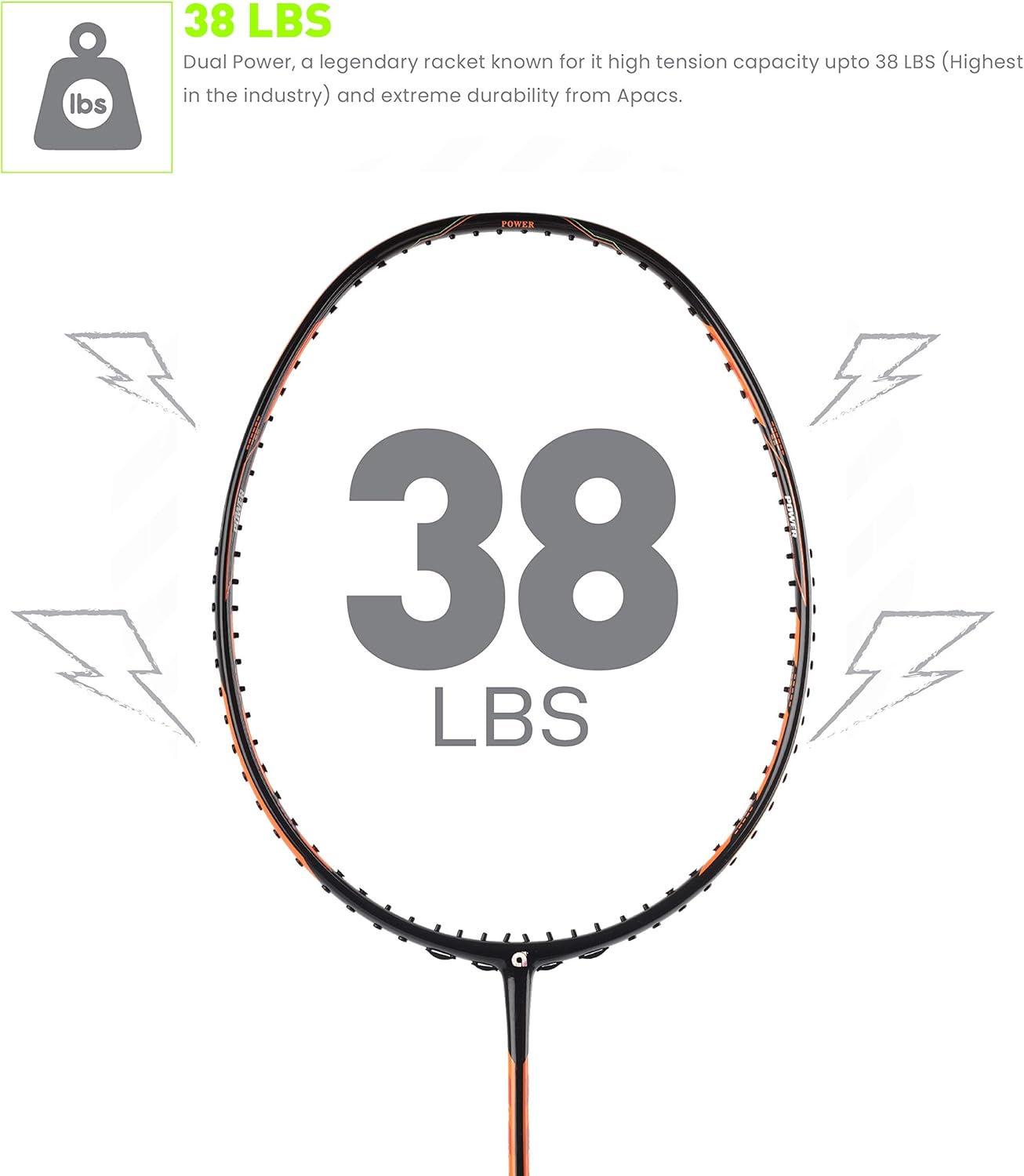 - Tension: Dual Power، مضرب أسطوري معروف بقدرته العالية على الشد حتى 38 رطلاً (الأعلى في الصناعة) ومتانته الفائقة من Apacs.