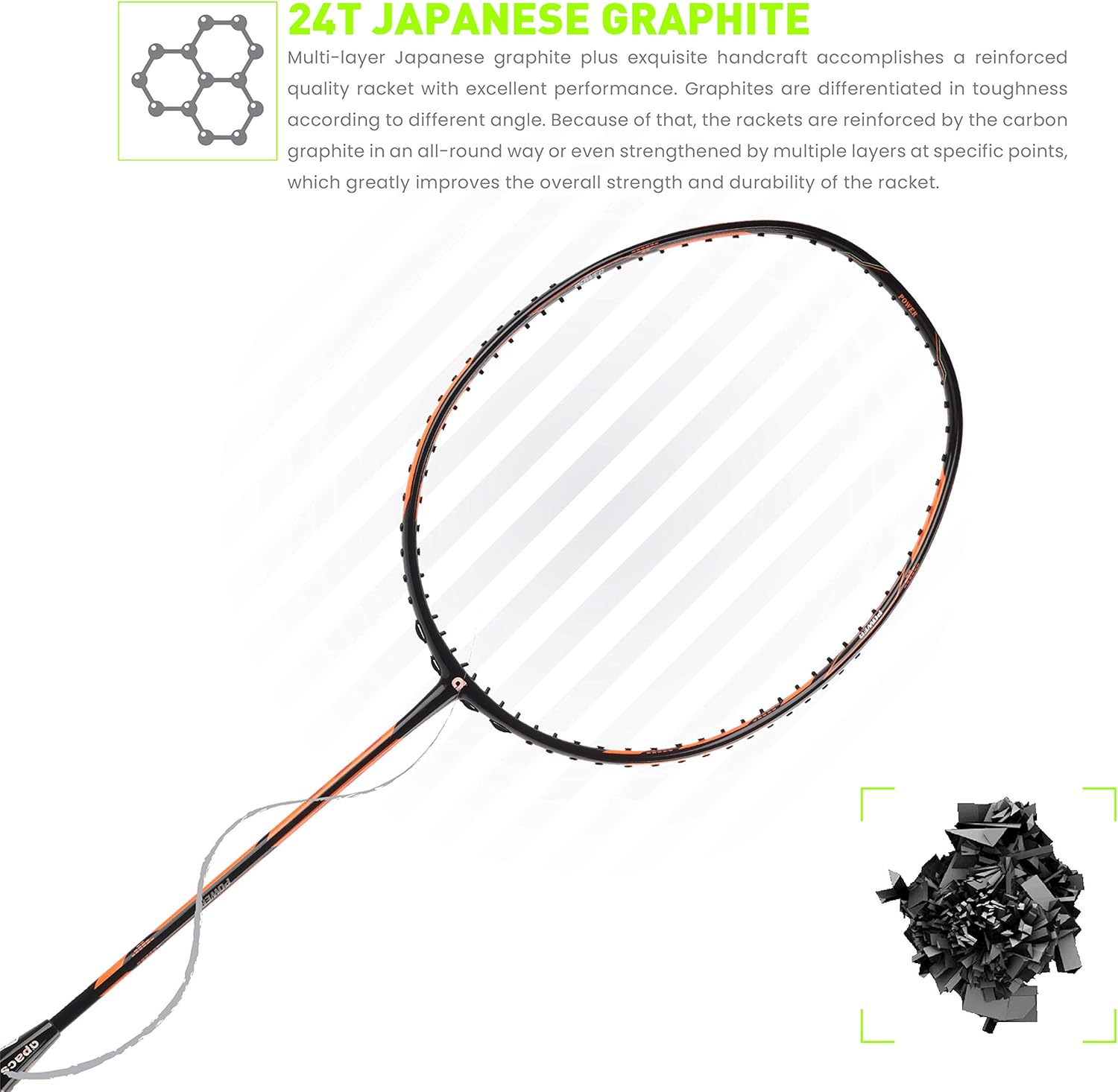 - 24T JAPANESE GRAPHITE: الجرافيت الياباني متعدد الطبقات بالإضافة إلى الحرفية اليدوية الرائعة ينتج عنه مضرب عالي الجودة مع أداء ممتاز. يتم تمييز الجرافيت حسب صلابته وفقًا لزوايا مختلفة. وبسبب ذلك، يتم تقوية المضارب بالجرافيت الكربوني بشكل شامل أو حتى تقويتها بطبقات متعددة في نقاط محددة، مما يحسن بشكل كبير من القوة والمتانة الإجمالية للمضرب.