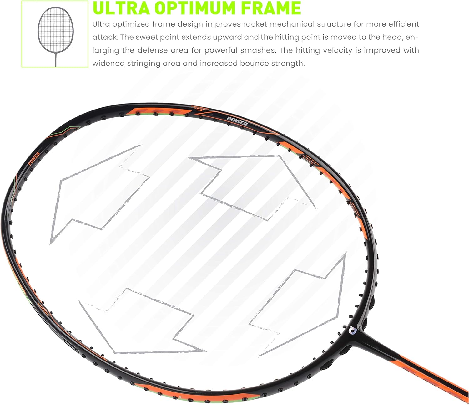 - إطار ULTRA OPTIMUM: تصميم الإطار المُحسّن للغاية يحسّن الهيكل الميكانيكي للمضرب من أجل هجوم أكثر كفاءة. تمتد النقطة المثالية للأعلى ويتم نقل نقطة الضرب إلى الرأس، مما يوسع منطقة الدفاع من أجل ضربات قوية. تم تحسين سرعة الضرب من خلال توسيع منطقة التوتير وزيادة قوة الارتداد.
