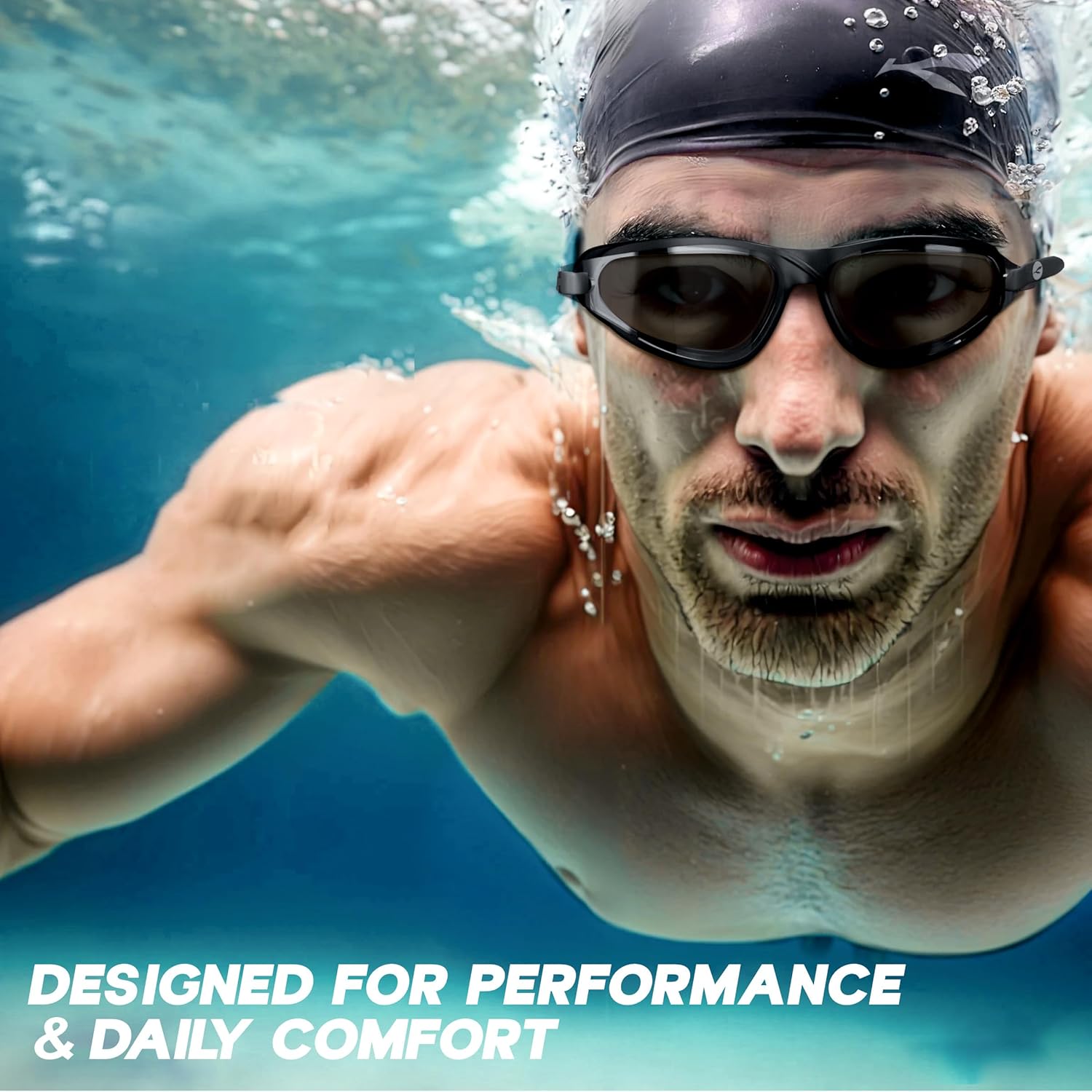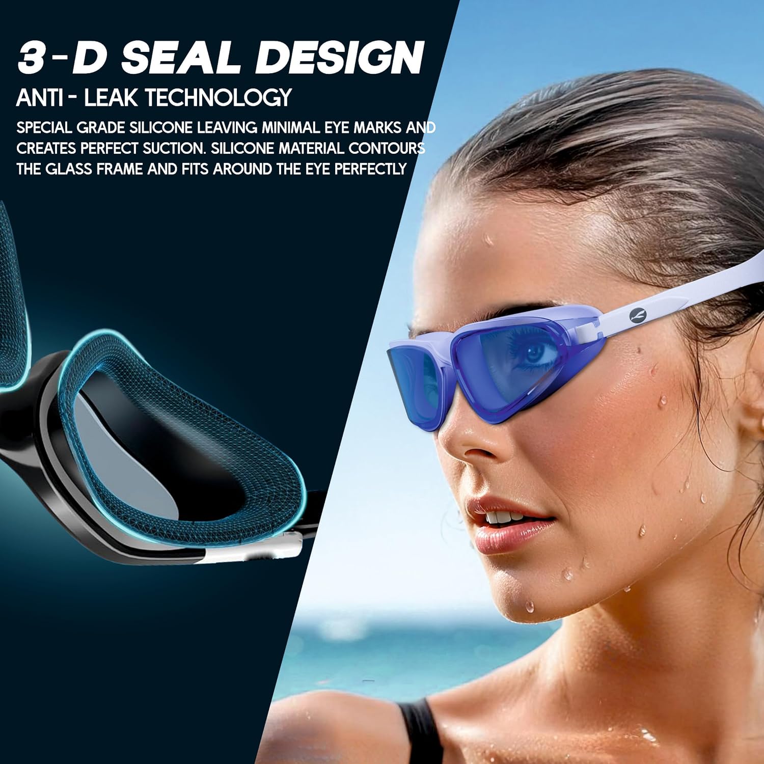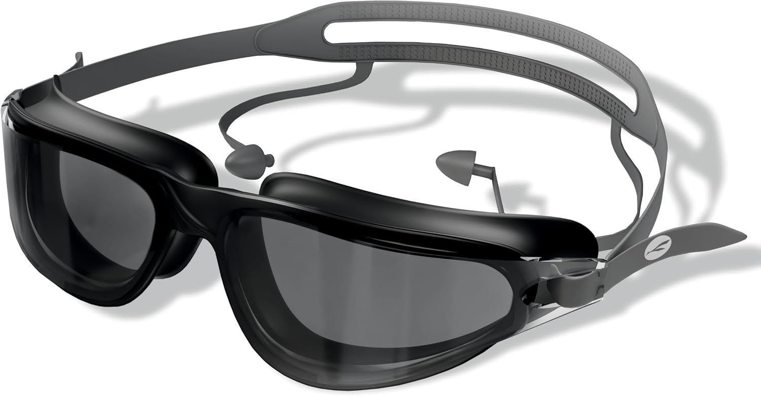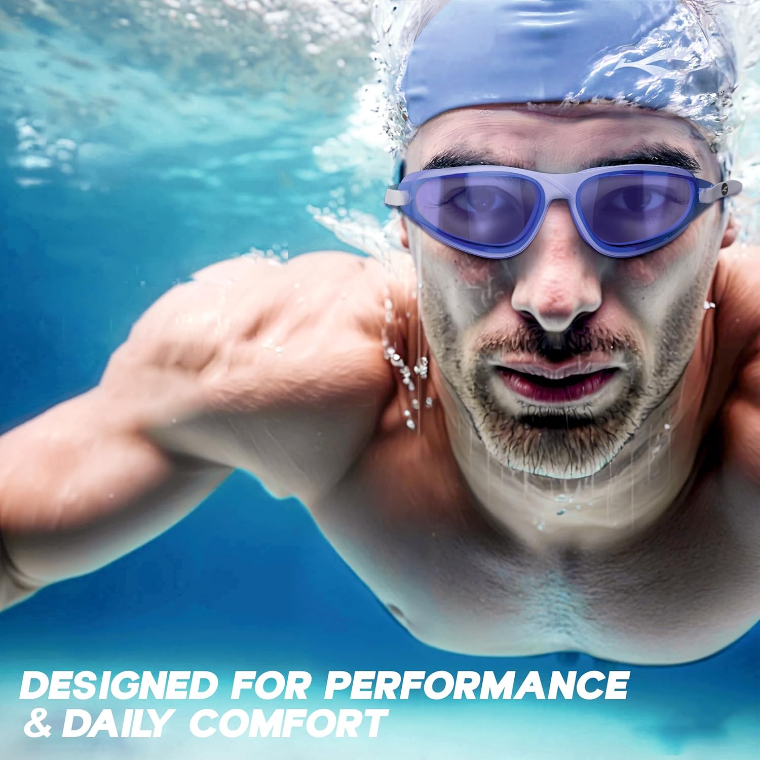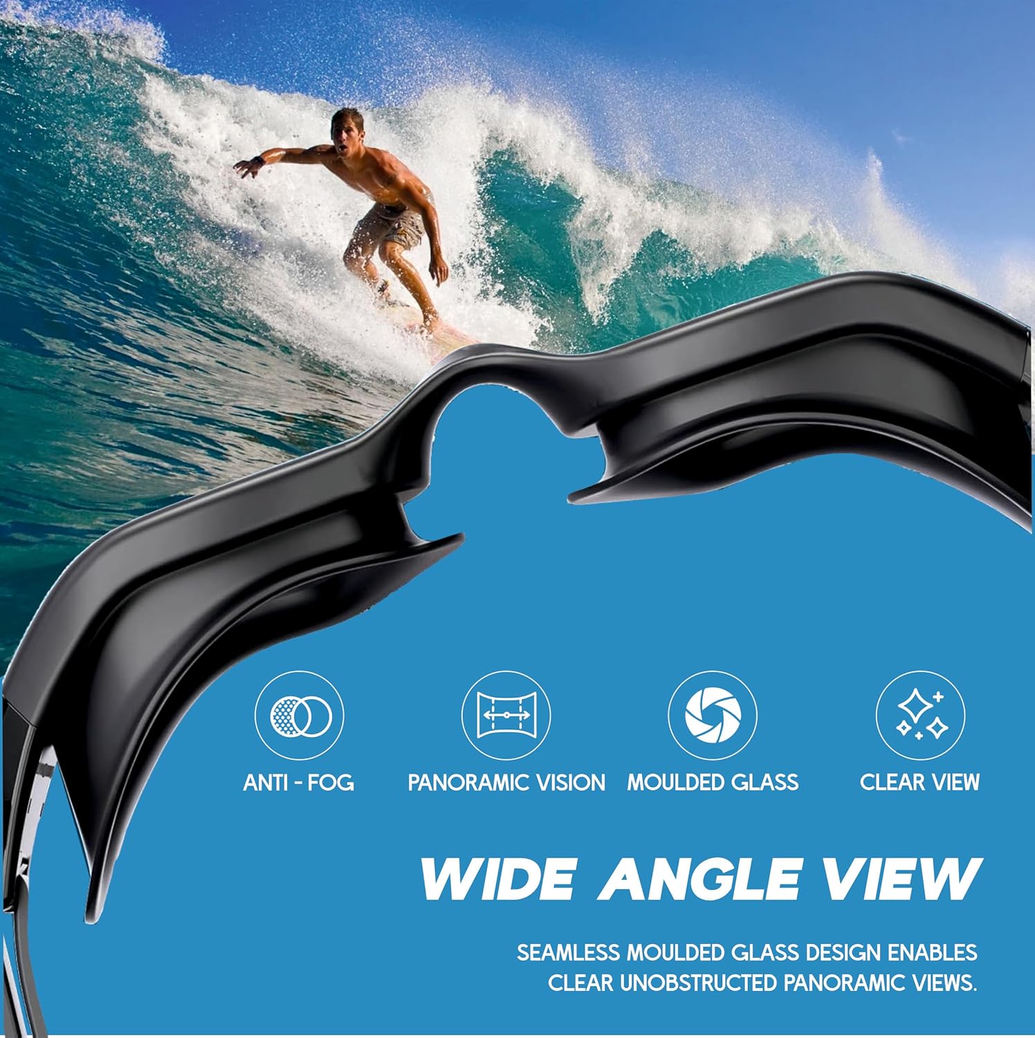 نظارات سباحة KONEX المضادة للضباب مع حماية من الأشعة فوق البنفسجية للرجال والنساء | رؤية واسعة الزاوية مع تقنية مانعة للتسرب | تأتي مع سدادات أذن مرفقة | مثالية للأطفال والكبار