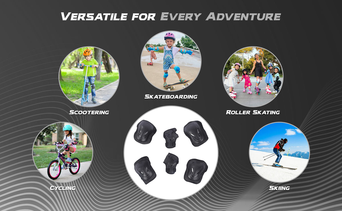 - مجموعة حماية كاملة للتزلج: تتضمن مجموعة واقيات التزلج الشاملة هذه وسادات للركبة وواقيات للركبة وواقيات للركبة، مما يوفر حماية من الرأس إلى أصابع القدم لمغامرات التزلج.