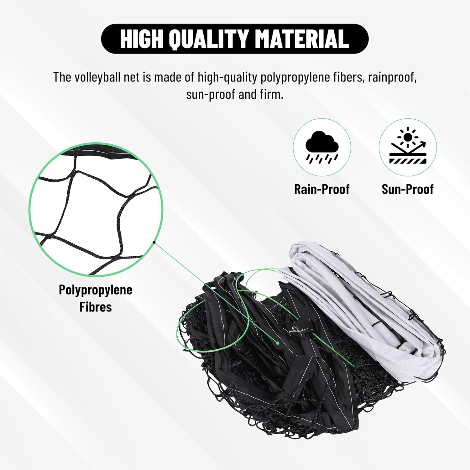 خامة الشبكة: شبكة الكرة الطائرة مصنوعة من ألياف البولي بروبلين عالية الجودة، مقاومة للمطر ومقاومة للشمس ومتينة.
