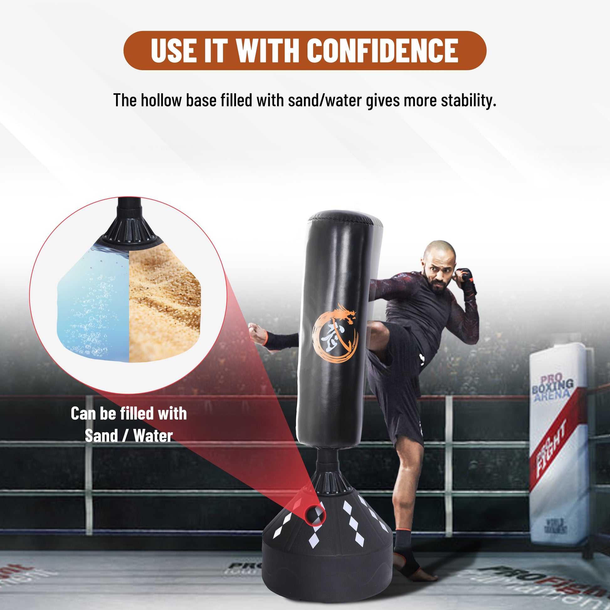 Endless كيس ملاكمة قائم | 6 أقدام | المادة: جلد البولي يوريثان | أكياس ملاكمة كيك بوكسينج لفنون القتال المختلطة، فنون القتال، اللياقة البدنية | معدات ثقيلة | مناسبة للمكتب، صالة الألعاب الرياضية المنزلية | للرجال والنساء