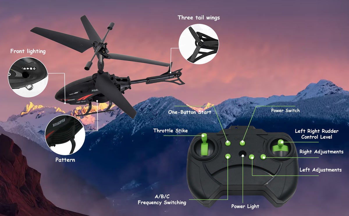 محتويات الصندوق: مروحية × 1، جهاز تحكم عن بعد × 1، بطارية