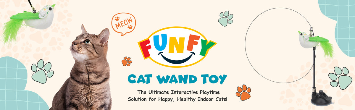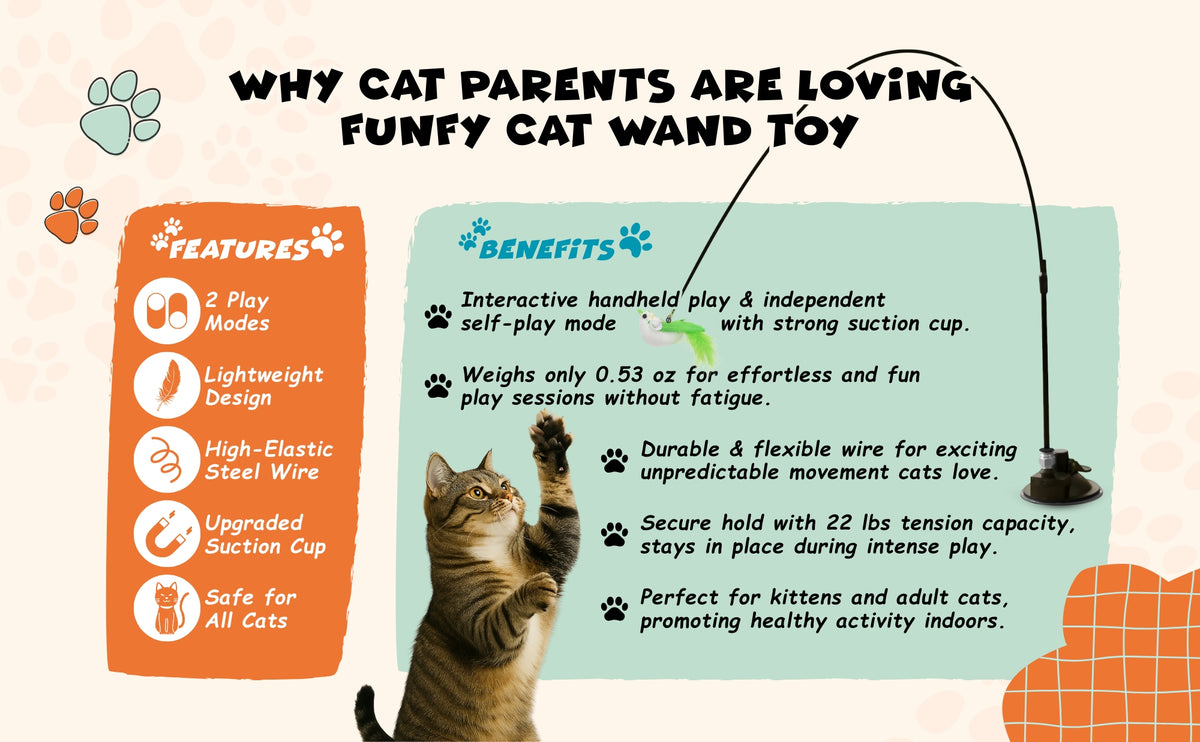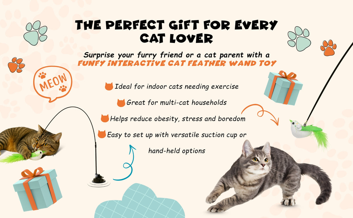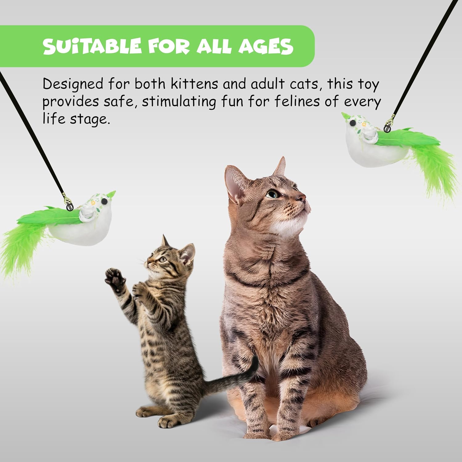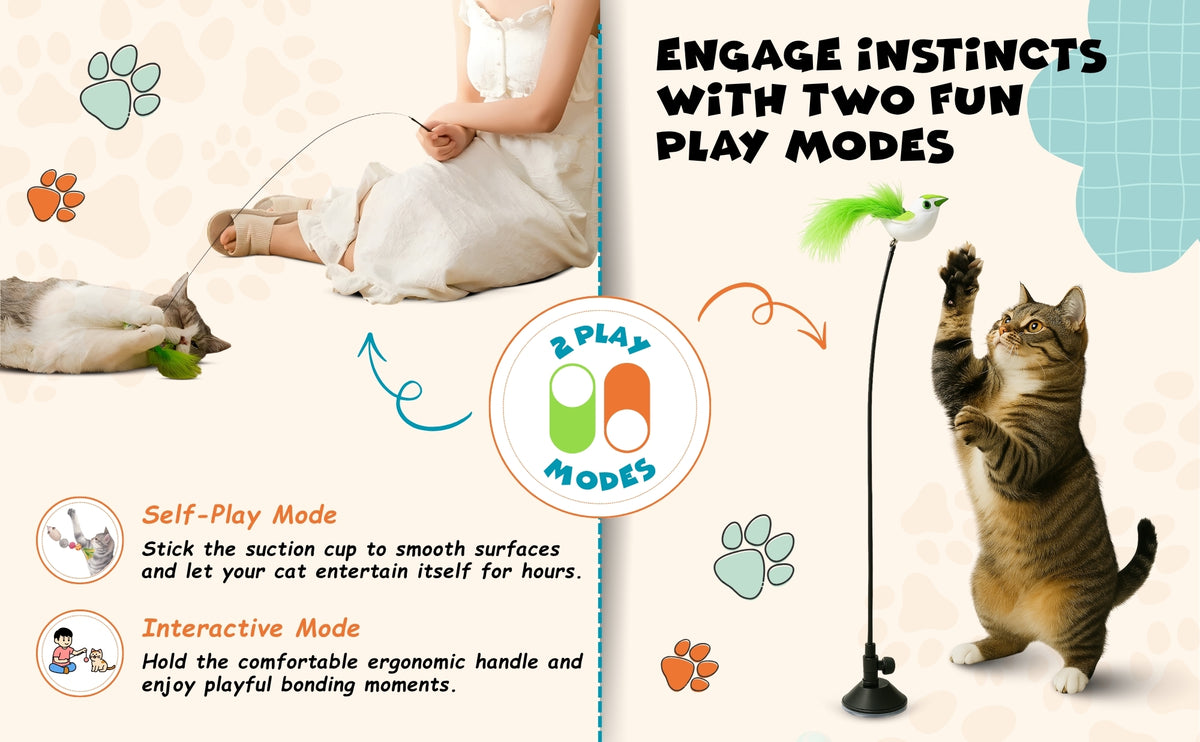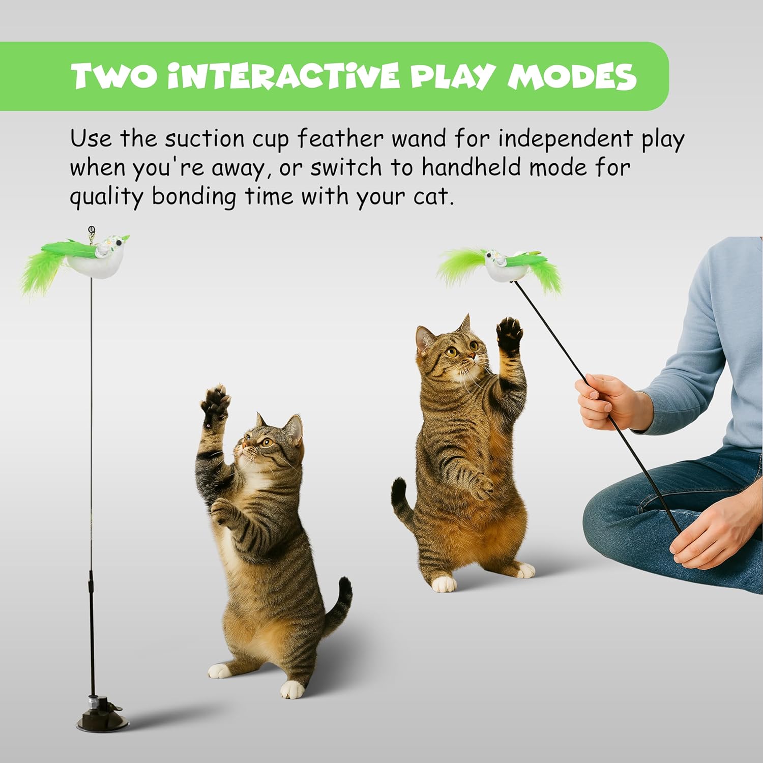 Funfy لعبة عصا القطط، لعبة تفاعلية من الريش للقطط مع طائر للعب والتمرين في الأماكن المغلقة | وضعان للعب: عصا إغراء للقطط مع طائر أخضر، وكأس شفط قابل لإعادة الاستخدام