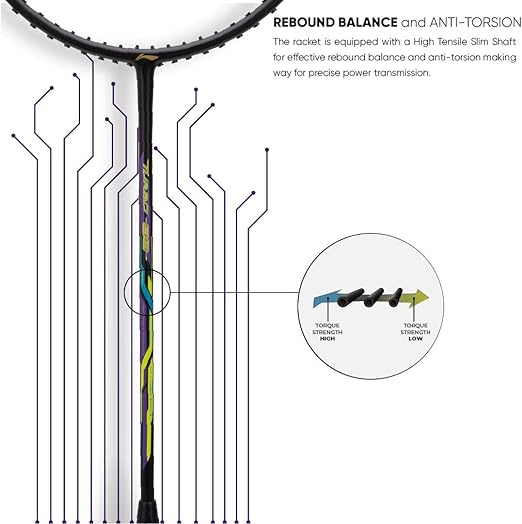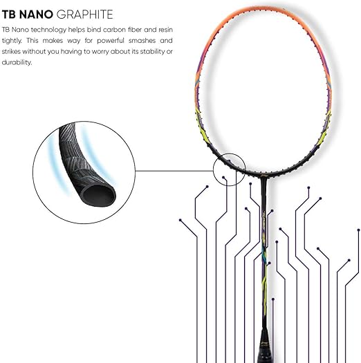 Li-Ning Turbo راكتور كرة الريشة من ألياف الكربون غير المشدودة 99 مع غلاف كامل مجاني (أسود/برتقالي)