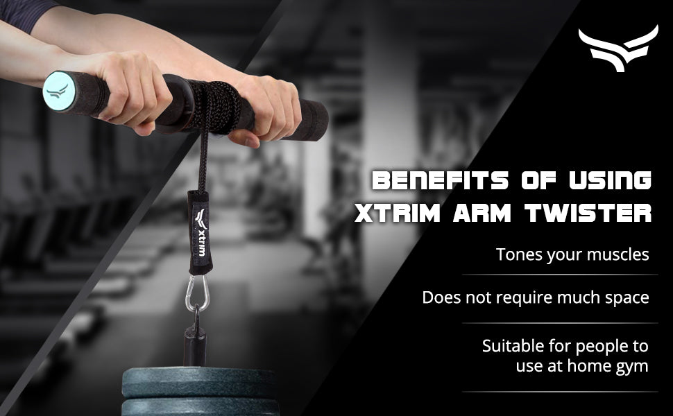 XTRIM Forearm Blaster - Arm Twister (يدعم 100 كجم) مع مقابض مخدرة مانعة للانزلاق وحبل ودبوس تحميل لممارسة تمارين اليد وتقوية العضلات وتدريب الذراعين