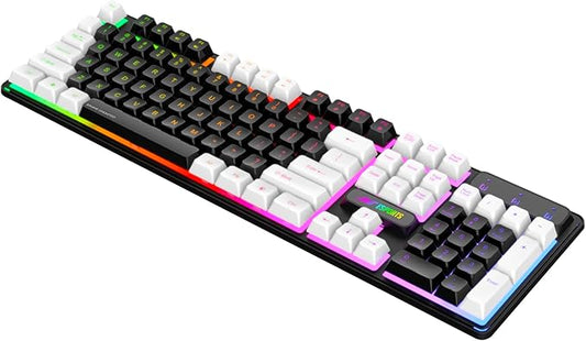 Ant Esports MK1400 Proلوحة مفاتيح ألعاب سلكية مع إضاءة خلفية بألوان مختلطة، وأغطية مفاتيح باللونين الأبيض والأسود، وأغطية مفاتيح مزدوجة الحقن - باللون الأسود
