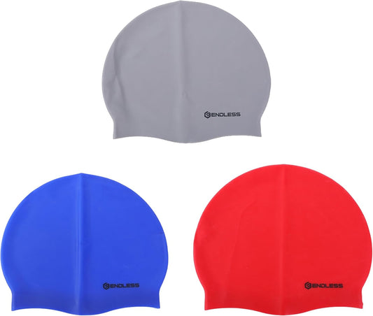 Endless قبعات سباحة من السيليكون مكونة من 3 قطع - مقاومة للتسرب، ناعمة وقابلة للتمدد للرجال والنساء